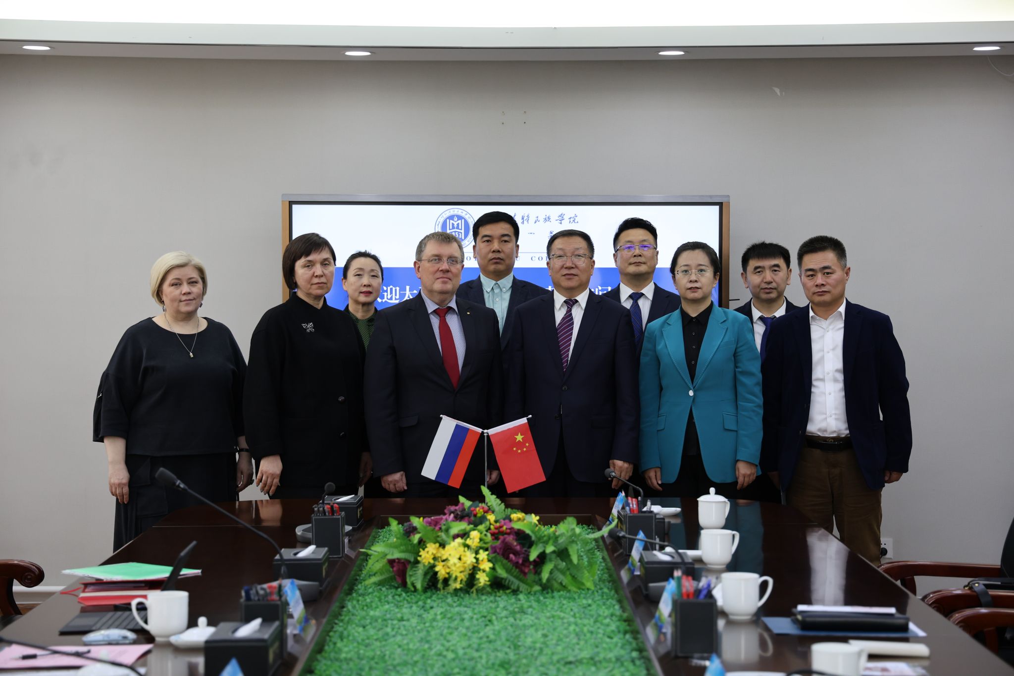 刘瑞鸿代表学校对索罗金·尼古拉·尤里耶维奇一行表示欢迎,并简要介绍了学校的办学历史、学科布局、科研平台建设及国际合作成效。他指出,2026—2027“中俄教育年”拉开序幕,为两校深化校际合作搭建了重要平台、创造了良好契机。此前两校在第十四届中国东北地区与俄罗斯远东及西伯利亚地区大学校长论坛期间正式签署合作协议,建立了合作关系并开展了务实高效的沟通对接。此次代表团到访,是推动合作迈向实质性推进的重要一步。希望双方立足中俄教育合作大局,聚焦优势学科对接,搭建师生互访交流机制,开展青年人文交流活动,夯实合作根基,逐步拓展联合培养、科研协作等领域合作,以校际务实合作的丰硕成果,为中俄教育人文交流贡献力量。