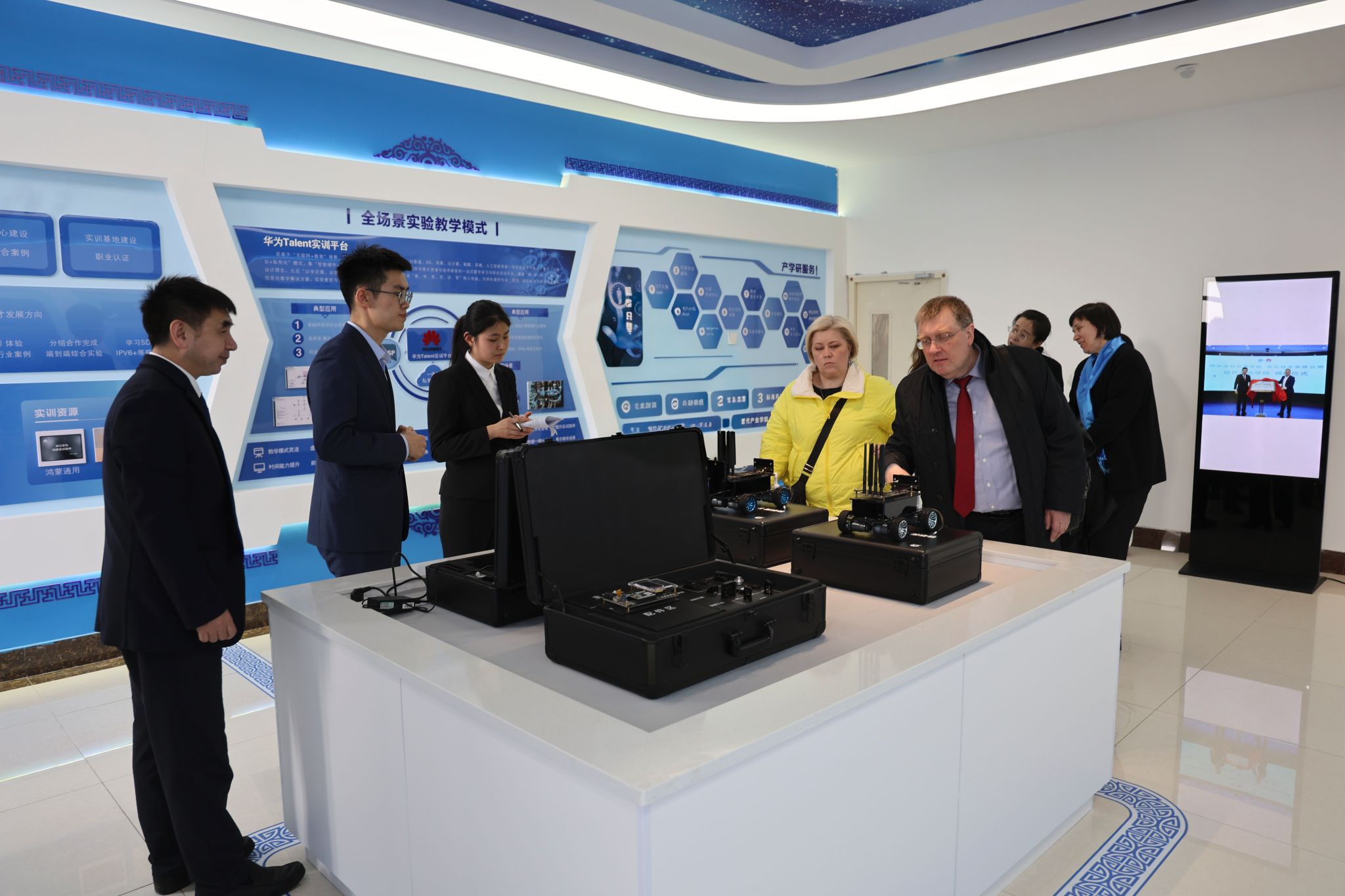 会后,索罗金·尼古拉·尤里耶维奇一行先后观摩了学校音乐与舞蹈学院实践教学成果展示、中华传统武术实践教学展示,参观了美术与设计学院非遗展示体验馆,实地考察了计算机与信息技术学院“华为现代产业学院”及教育学院实训室等。