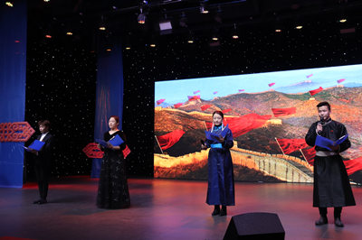 演出在马头琴齐奏《鄂尔多斯高原》中拉开帷幕。蒙语诗朗诵《伟大的党》抒发了莘莘学子对党的无限爱戴;藏族学生舞蹈《扎西德勒》、蒙汉诗朗诵《启程》激情澎湃,寓意深远;诗朗诵《廉洁颂》慷慨激昂,充满正能量;蒙语歌曲《我们在一起》生动活泼,纯朴甜美;汉语歌曲《映山红》、《中国,中国,鲜红的太阳永不落》浑厚雄壮,表达了青年学子不忘初心,继续奋斗的坚定信念;最后,在嘹亮高昂的教师代表男女对唱《守望相助》中文艺汇演圆满落下帷幕。