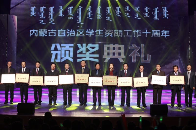 当晚由自治区教育厅主办的“十年助学路,筑梦青春行”自治区学生资助工作10周年颁奖典礼在内蒙古艺术学院音乐厅举行。自治区党委常委、宣传部部长白玉刚,各高校分管学生工作的校领导、学生处长、资助中心主任和驻呼高校学生代表参加颁奖典礼。