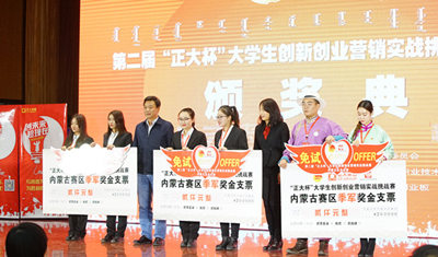 12月24日,第二届“正大杯”大学生创新创业营销实战挑战赛内蒙古区总决赛暨颁奖典礼在内蒙古电子信息职业技术学院举行。本次大赛由内蒙古自治区团委和正大集团共同主办。自治区团委副书记、青联副主席陈晓东,正大集团资深副董事长白善霖,内蒙古股权交易中心总经理孙枫等出席活动。