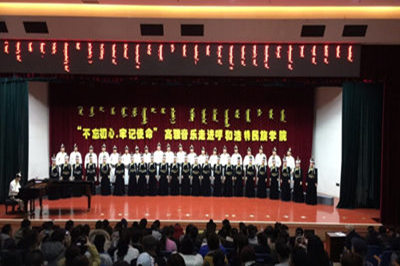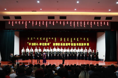 为了更好的宣传贯彻党的十九大会议精神,重温党的光辉历程,讴歌党的丰功伟绩,弘扬民族传统文化,营造高雅校园文化氛围,校团委于12月22—23日,邀请内蒙古民族艺术剧院蒙古族青年合唱团在图书馆二楼报告厅举办了两场“不忘初心·牢记使命”高雅艺术进校园活动。校党委副书记胡春梅教授出席活动,两天共计1000余名师生观看了演出。