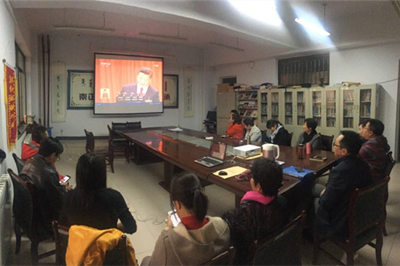 学校党委中心组以扩大会议形式组织观看现场直播,第一时间同步学习了会议工作报告。15个系部党总支以党总支中心组、教师党支部、学生党支部为组织形式集体观看了开幕式。离退休人员管理处党总支、后勤管理处党总支和校团委分别组织老干部、教工、团干部观看了现场直播。机关党总支各党支部也开展了收听收看活动。