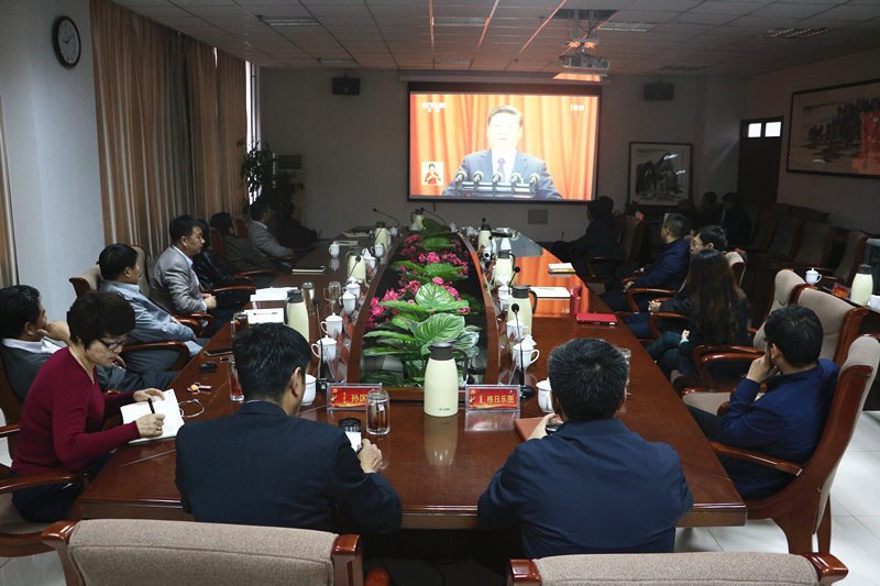10月18日上午9时,举世瞩目的中国共产党第十九次全国代表大会在北京人民大会堂隆重开幕。学校党委中心组在综合楼11层会议室组织党委中心组成员、各职能部门负责人集中观看十九大开幕式。