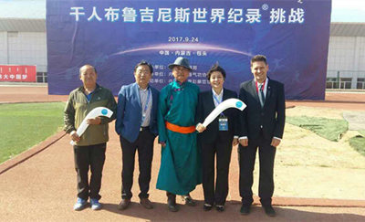 亲临千人布鲁吉尼斯世界纪录挑战现场的领导和认证官有国家体育总局文化发展中心党委书记薛立、国家体育总局体育文化发展中心研究部主任崔乐泉、吉尼斯世界纪录大中华区总裁罗文、吉尼斯世界纪录大中华区公关总监王怀英、吉尼斯世界纪录认证官罗琼女士、内蒙古自治区体育局副局长吴刚、包头市体育局副局长常秀文、包头职业技术学院副院长吴群,布鲁传承人、米乐官网白东升副教授作为见证人参加了此次活动。