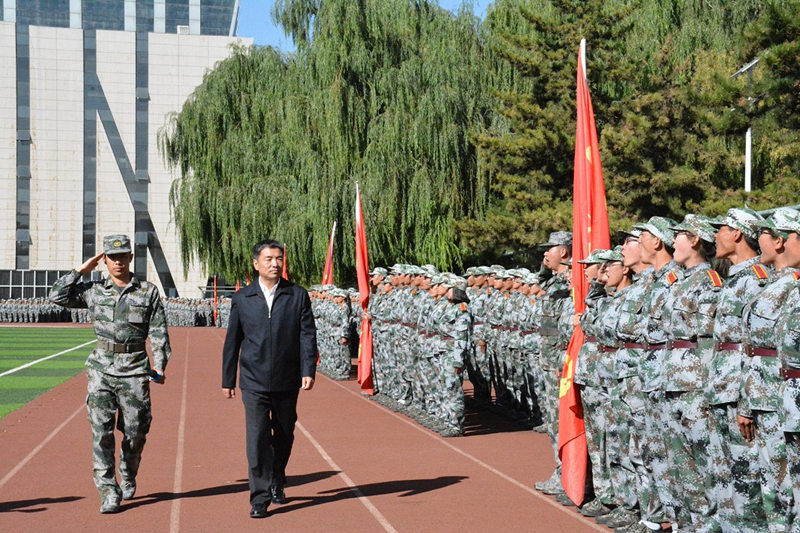9月22日上午,米乐官网2017级新生军训阅兵式暨总结表彰大会在学校运动场举行。学校党委副书记、院长格日乐图,党委副书记胡春梅,副院长阿拉坦仓、贺希格吉雅、纳丽娜,给水团团长武俊亭上校,内蒙古军训办参谋张鹏飞少校出席大会,学校各处室负责人、系(部)主任、党团总支书记、辅导员及2300余名新生参加了大会。大会由学生处处长杨福梅主持。