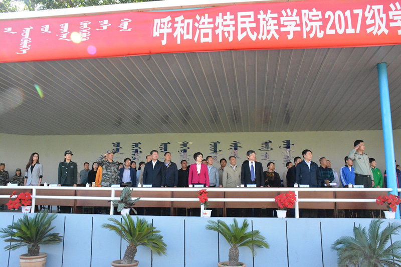 随后,阿拉坦仓副院长宣布了2017级新生军训工作先进集体和个人表彰决定,并郑重表达祝福语。教官代表李国龙同志作了军训工作的总结发言;体育系唐培琦同学代表全体2017级参训学生畅谈了军训体会和心得;学生处副处长包仓接回了军训团旗。