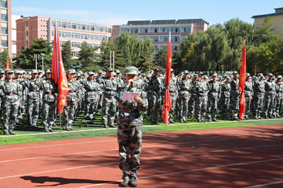 随后,参加此次军训的全体学生进行了宣誓,并由学校党委书记孙国权向军训团团长授旗。军训团政委、学校学生处处长杨福梅宣布军训团各连编排情况,并让团总支书记(副指导员)接教官归队。