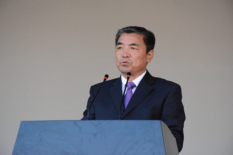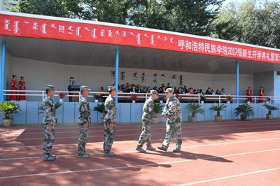 首先,格日乐图院长对新同学的到来表示热烈的欢迎和衷心的祝贺,并向同学们介绍了学校过去的发展历程和目前的发展现状。格院长在讲话中提出三点希望:一是以学为本,学以致用。要尽快适应新的学习环境,勤于思考,以勤奋学习为根本,以担当有为为己任,不断使自己根基扎实、枝繁叶茂。二是团结合作,博采众长。要学会与人相处,学会付出与合作,学会求助与竞争,在影响他人的同时,成就更好的自己。三是坚持坚守,志存高远。唯有志存高远,才能放宽眼界;唯有步履坚实,才能心存阳光;唯有一往无前,才能接近成功的目标,获得更加完美的人生。格院长衷心祝愿同学们的第一堂课——军训圆满成功,祝愿同学们学有所获、学业有成。