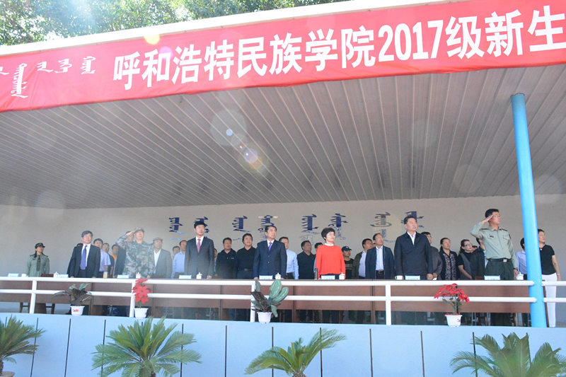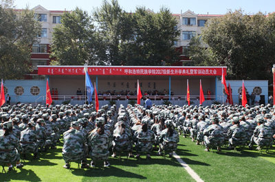 2017年9月11日上午10时,米乐官网2017级新生开学典礼暨军训动员大会在学校操场隆重举行。学校党委书记孙国权,党委副书记、院长格日乐图,党委副书记胡春梅,副院长阿拉坦仓、贺希格吉雅、纳丽娜及北京军区给水团团长武俊亭上校、内蒙古军训办参谋张鹏飞少校出席大会,各职能部门负责人、系(部)党总支书记、系主任、团总支书记、新生班主任及2017级全体新生参加了此次大会。大会由副院长纳丽娜主持。