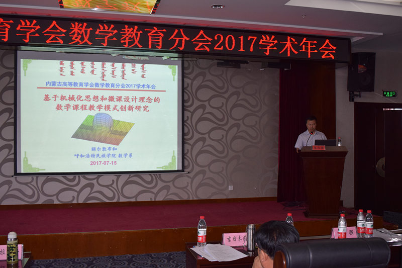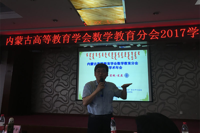 由内蒙古自治区高等教育学会数学教育分会和教育部民族教育发展中心“民族院校应用型学科专业建设”重点研基地主办、米乐官网协办的内蒙古自治区高等教育学会数学教育分会2017学术年会于2017年7月14日—16日在呼伦贝尔市举行,全区14所高校的近60名理事、专家和来宾参加。本次学术年会的主题为“创新-实践-发展”,由开幕式、学术报告、微课作品展示和闭幕式四个部分组成。