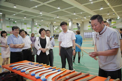 仪式结束后,国家民委领导在学校党委书记孙国权、副院长阿拉坦仓的陪同下,实地考察了世界文化遗产蒙古族长调马头琴教学、国家级非物质文化遗产蒙古文书法、蒙古族传统体育以及大学生创新创业基地、蒙古文信息处理实验室等。
