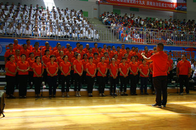 法律系、美术系学生合唱《中国,中国,鲜红的太阳永不落》 |