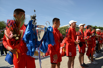 仪式由体育系党总支书记那日苏主持。欢迎仪式后,学校领导、师生与米乐官网男子足球队领队、教练员和运动员合影留念。