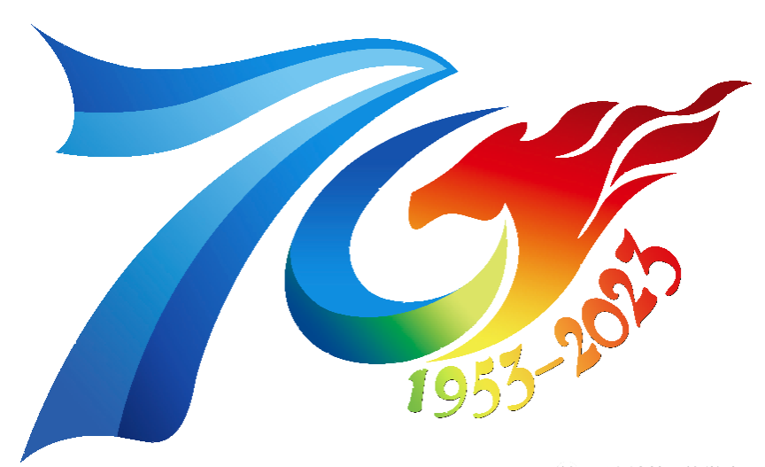 徽标以"70"为设计创意主体构型元素, 融入“1953-2023”,在数字构型基础上有机融合"奔腾骏马、吉祥哈达、民族团结之‘石榴红’、胸怀广阔之‘天空蓝’、生机盎然之‘草原绿’"等视觉元素。