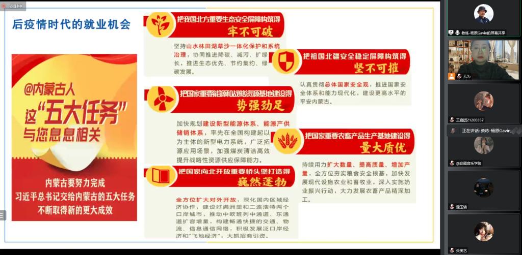 为深入学习贯彻党的二十大精神,充分认识党的二十大的重大意义和丰富内涵,积极响应国家就业政策号召全力推进2023届毕业生就业工作,音乐学院于12月13日下午举办了《做一个创业型的就业者》为主题的线上就业指导讲座。主讲人为中国国际“互联网+”大学生创新创业大赛评委杨原老师。学校就业指导中心主任包仓及音乐学院全体师生参加了本次讲座,讲座由学院团学负责人包为为主持。