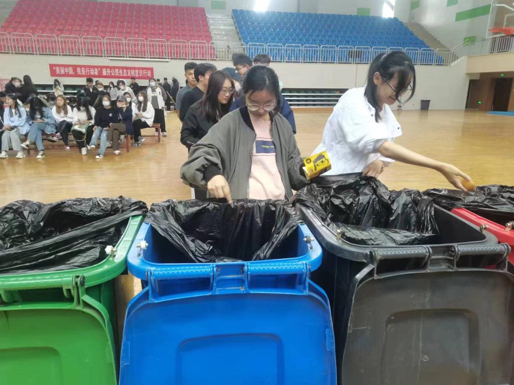 活动分为知识竞赛和垃圾分类实践两个环节。在知识竞赛环节中,经过激烈的角逐最终文学院获得了一等奖;马克思主义学院、计算机科学与信息工程学院获得了二等奖;公共管理学院、经济管理学院、蒙古学学院获得了三等奖;外国语学院、基础教育学院、法学院、数学与大数据学院、新闻传媒学院获得了优秀奖。在垃圾分类实践环节中,同学们纷纷主动学习垃圾分类知识、主动分类,将生活中常见的垃圾分类装入相应的垃圾桶。