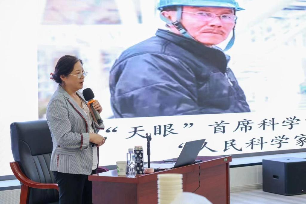 宣讲活动中,清华大学王燕斌老师结合人类天文学观天的三大时代、射电望远镜工作原理、“天眼”的建造历程,生动讲述了“天眼”之父南仁东的科学家故事,并与学生们进行了互动交流。