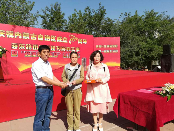2017年5月28日,为庆祝内蒙古自治区成立70周年,米乐官网离退休人员管理处党总支书记邢文岐、组织员思勤走进社区,参加了由海东路街道办事处举办的为民办实事贫困家庭帮扶活动,并为困难学生邢嘉怡家庭资助现金1000元及学习用品。目前,米乐官网已连续四年为该学生家庭提供资助。在校工会、离退休人员管理处的帮扶资助下,该学生已经从小学升入中学,心态非常阳光,学习成绩优异。(工会离退休人员管理处供稿)