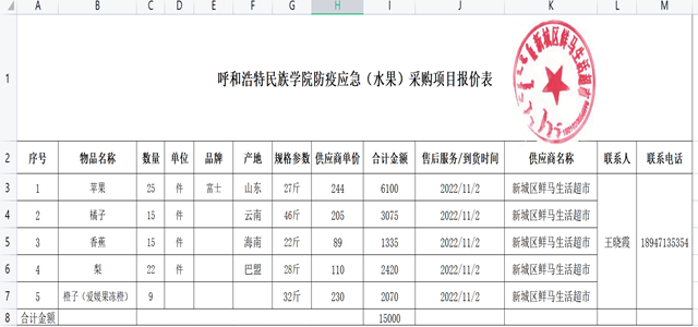 二、项目名称:MILE米乐集团防疫应急物资(水果)项目