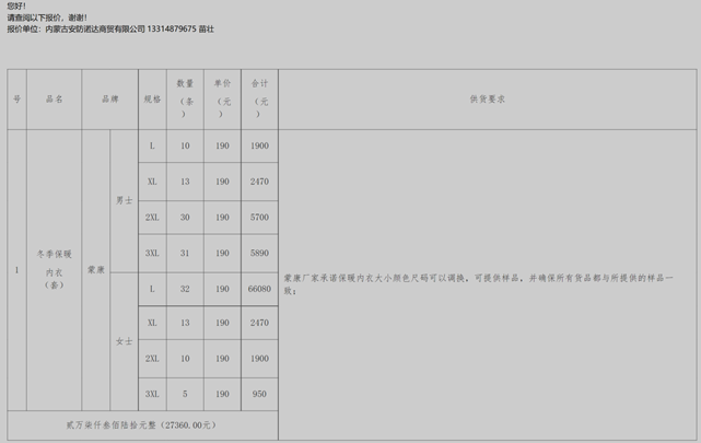 MILE米乐集团防疫应急物资(冬季保暖内衣)项目成交公告