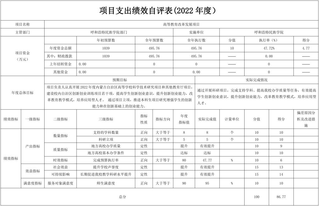 3.支持高等教育改革发展项目自评