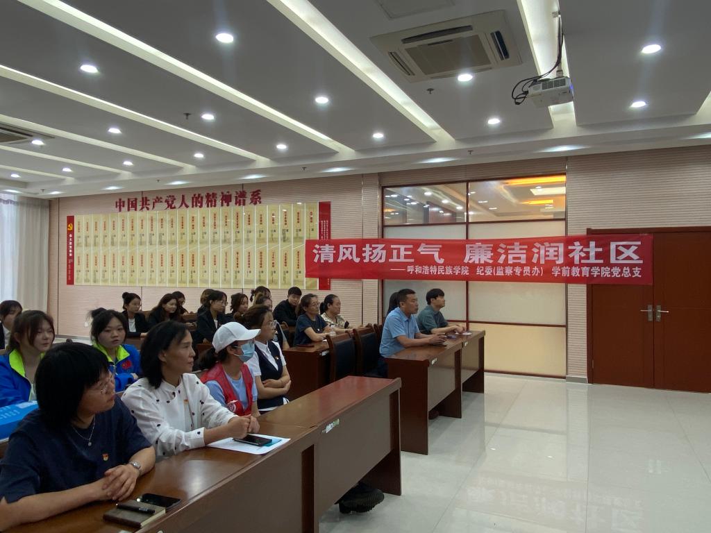 为深入学习贯彻习近平新时代中国特色社会主义思想、党的二十大和二十届中央纪委二次全会精神,推进主题教育和纪检监察干部队伍教育整顿走深走实,6月20日下午,学校纪委联合学前教育学院党支部,深入赛马场社区,组织开展以“清风扬正气,廉洁润社区”为主题的党日活动。米乐官网纪委监察办全体人员和学前教育学院院党总支党员师生代表出席并参与本次活动。