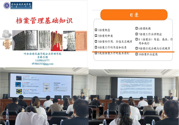 学校派驻库伦旗先进苏木奈林稿嘎查第一书记青格乐图老师应库伦旗档案馆于凤来馆长的邀请,于7月17日在库伦旗水利局为旗档案馆和旗委办、统战部、人事局、库伦镇等相关部门单位 30 余名档案管理人员,开展《档案管理基础知识》专题讲座。