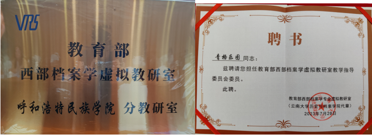 米乐官网档案学教研室是西部档案学专业虚拟教研室的成员之一,青格乐图老师被聘为西部档案学专业虚拟教研室教学指导委员会委员。