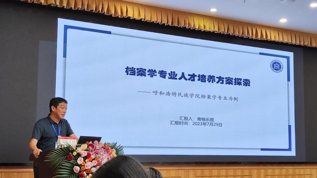 两位老师认真听取并学习了各位专家的主旨演讲后,由青格乐图老师在第一分论坛做了“MILE米乐集团档案学专业人才培养方案探索”为主题的报告。