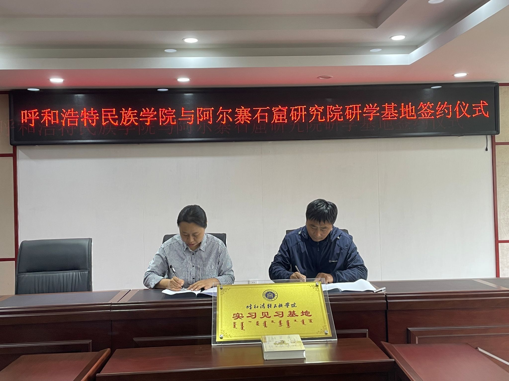 9月26日—27日,美术学院副院长塔娜带领相关专业教师一行4人赴鄂托克旗与鄂托克旗蒙古秘史博物馆、阿尔寨石窟研究所和鄂托克旗蒙古族中学、职业中学分别签订了研学基地和实习见习基地协议。