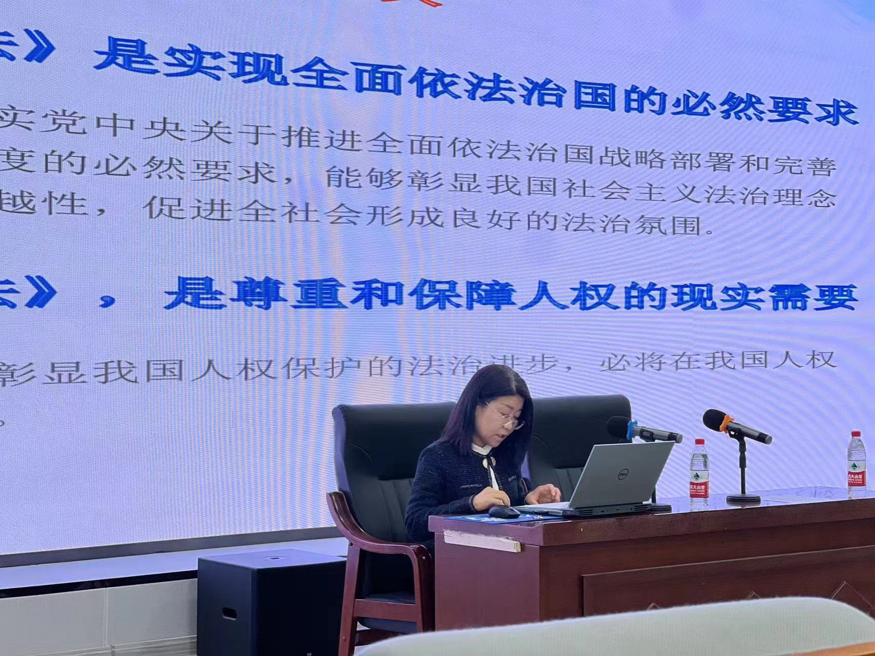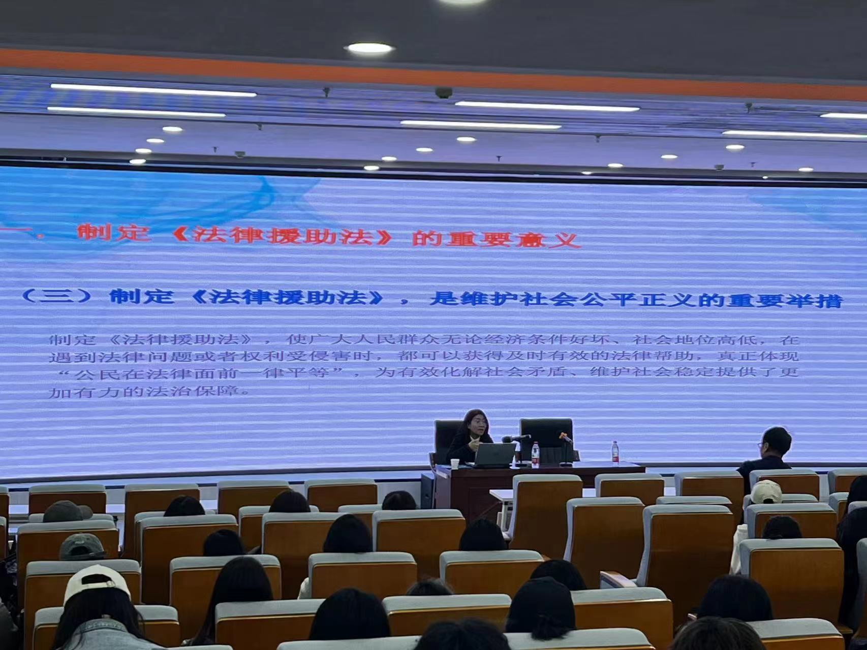 为深入贯彻习近平法治思想,提升米乐官网法律援助站的业务能力和法律援助服务水平,促进法律援助站工作标准化、规范化建设,法学院于11月2日在米乐官网北院图书馆一楼报告厅,邀请到呼和浩特市法律援助中心付春际主任以“法律援助有关工作介绍与培训”为题作了专题辅导讲座,会议由法学院朝克图老师主持,法律援助站的全体成员参加。