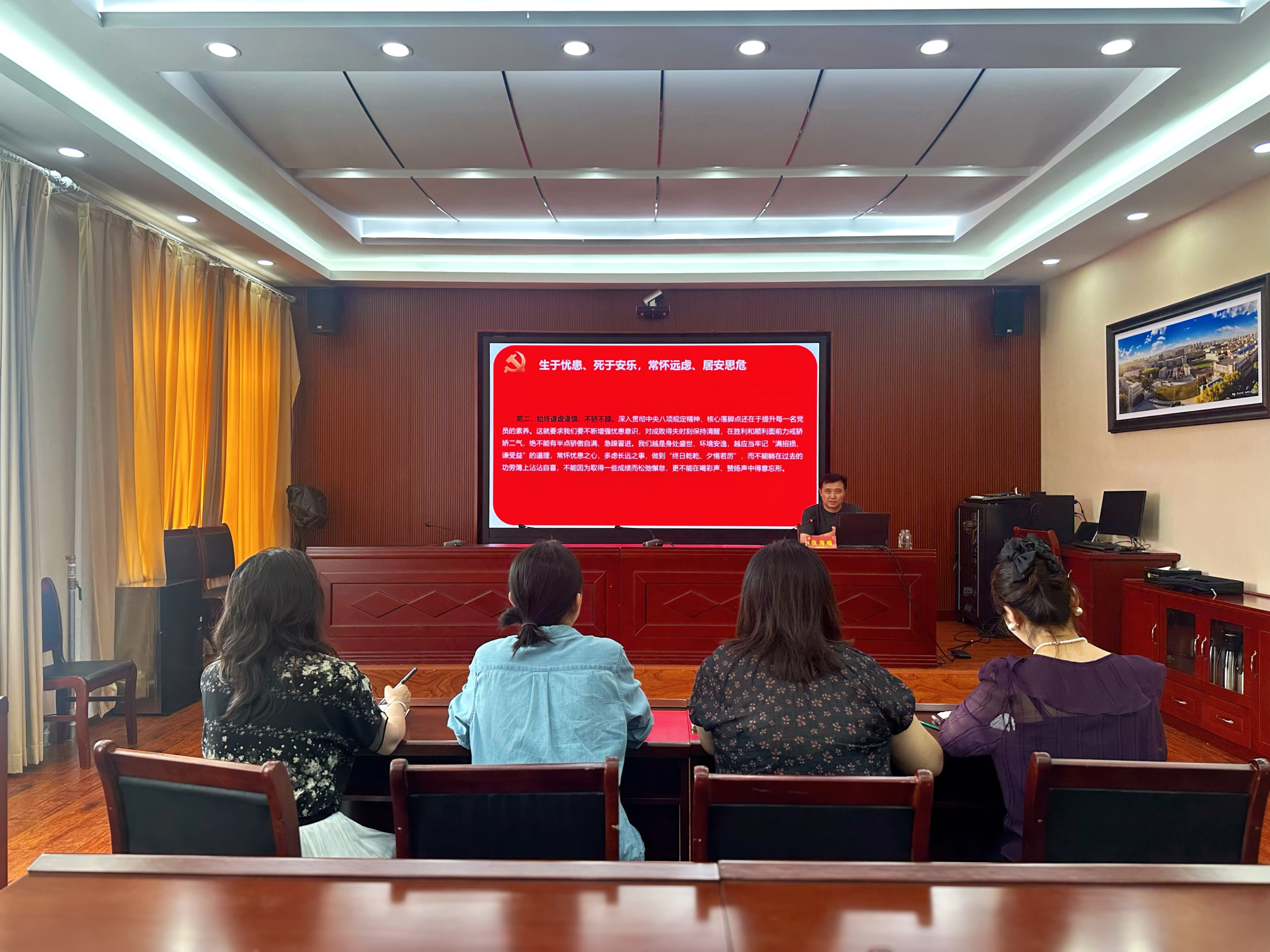 张海峰以《铭记生于忧患 死于安乐 做到常怀远虑 居安思危》为题讲授专题党课,从世情、国情、党情、校情等四个角度带领大家梳理政策脉络、分析当前形势,展望未来发展。他号召,支部党员干部要增强对初心使命的神圣感敬畏心,要始终谦虚谨慎、不骄不躁,要加强学习实践,增强担当本领,要以强烈的斗争精神应对风险挑战,做到难不住、压不垮,要保持艰苦奋斗的政治本色。