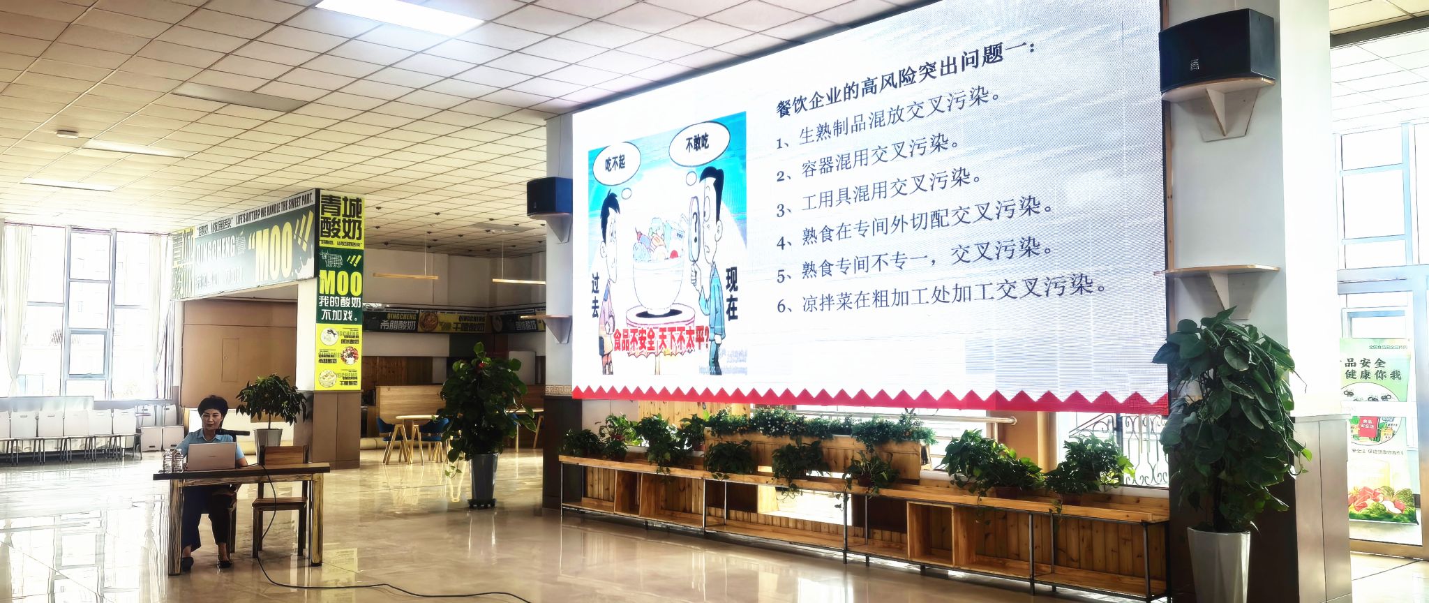 为强化米乐官网食堂食品安全管理,提升食堂从业人员食品安全意识及专业能力,8月28日,后勤管理处伙食科在南食堂三楼开展食堂从业人员食品安全专题培训会,培训会特邀北京博百鲜餐饮管理有限公司内蒙古区域食安总监郭雨讲授。后勤管理处负责人、食堂管理全体工作人员及南食堂从业人员参加培训。