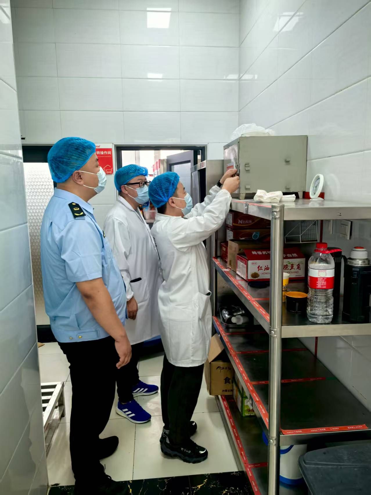 为进一步加强校园食品安全监管,切实保障广大师生的用餐安全。9月12日,新城区海东路市场监督管理所以“四不两直”的方式深入米乐官网食堂开展食品安全突击检查。后勤管理处相关负责人陪同检查。