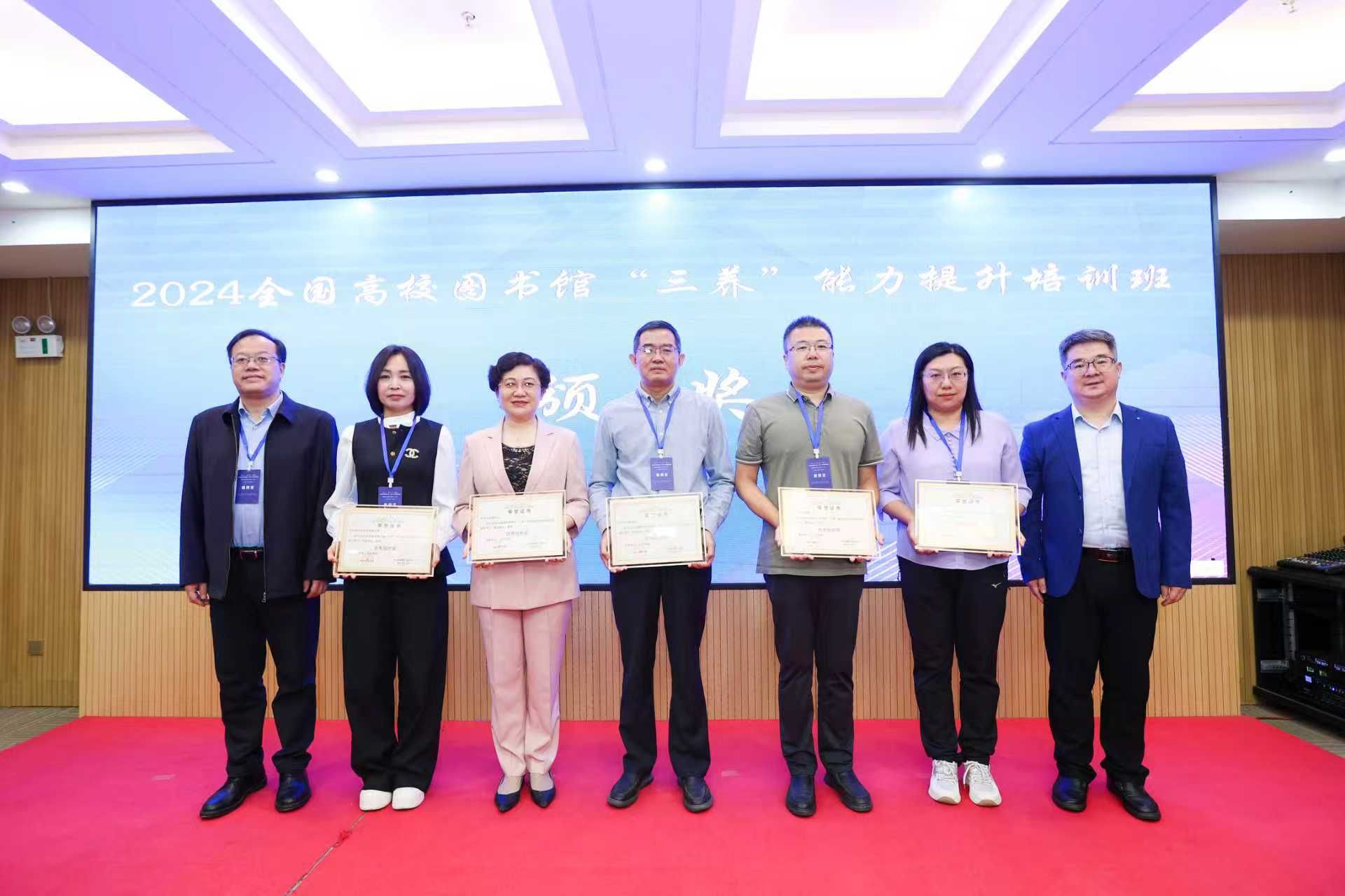 仪式上,主办方为2024全国高校图书馆“三养”能力提升培训班获奖单位颁发了获奖证书。2024年米乐官网图书馆积极组织馆员参加以强化馆员信息素养、学术素养与文化素养为主旨的全国高校图书馆“三养”能力提升培训班,参与人数和完成率均位居自治区前列,米乐官网图书馆凭借参与培训的积极态度和出色的组织能力荣获“优秀组织奖”。图书馆参考咨询部主任薛芳作为优秀组织单位获奖代表发表了获奖感言,分享了培训在提升馆员信息、学术与文化素养方面的显著成效,并对2025年培训的前沿性和创新性表达了热切期待。