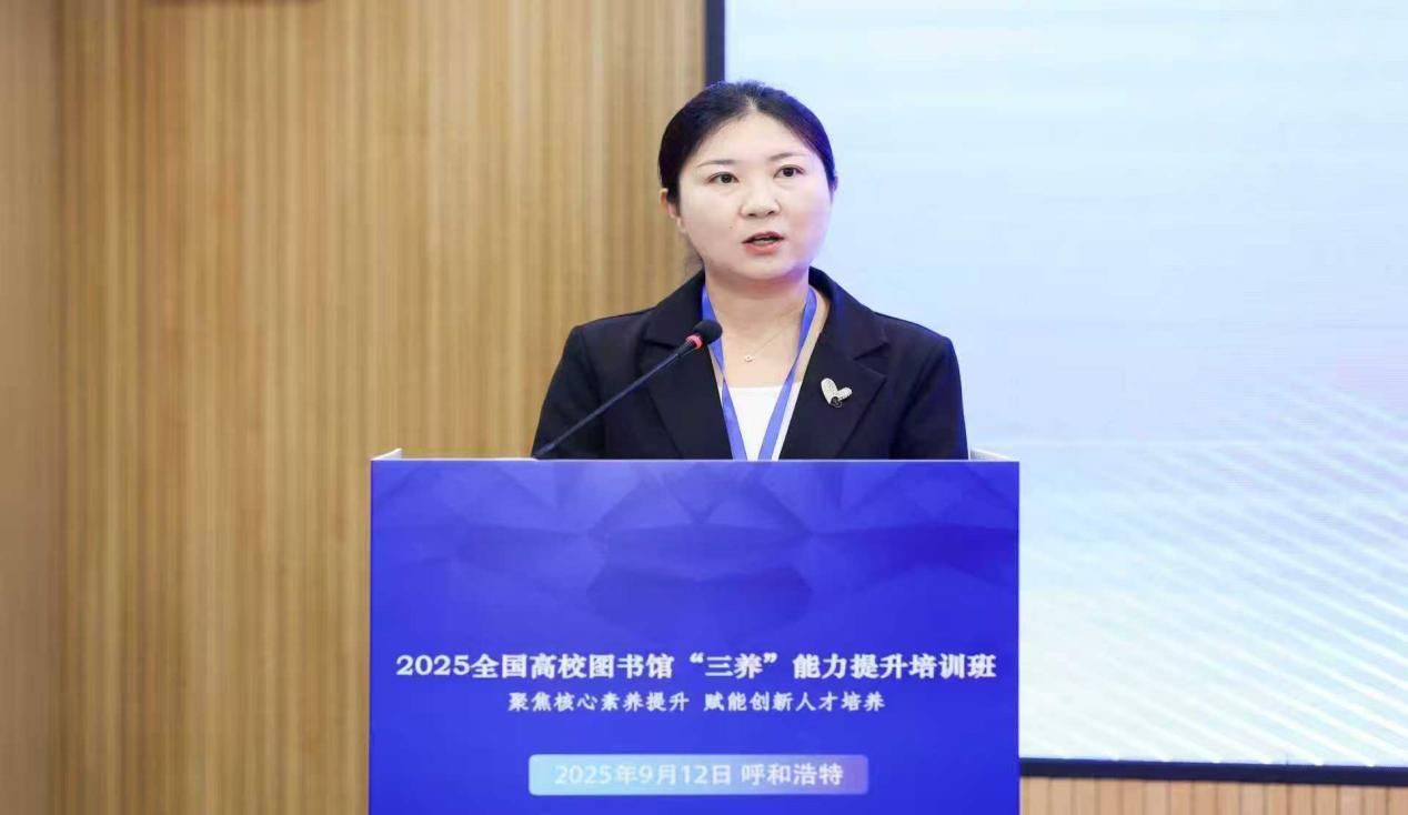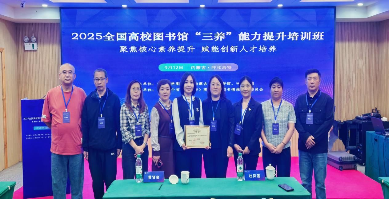 9月12日,由南京大学图书馆、内蒙古大学图书馆、中国知网共同主办的2025全国高校图书馆“三养”能力提升培训班开班仪式在呼和浩特成功举行。来自内蒙古、江苏、山东、陕西、河北等24所高校图书馆的150余位代表参加线下会议,全国近3000人观看线上直播。米乐官网图书馆全体教职工通过线上、线下形式参加了开班仪式。