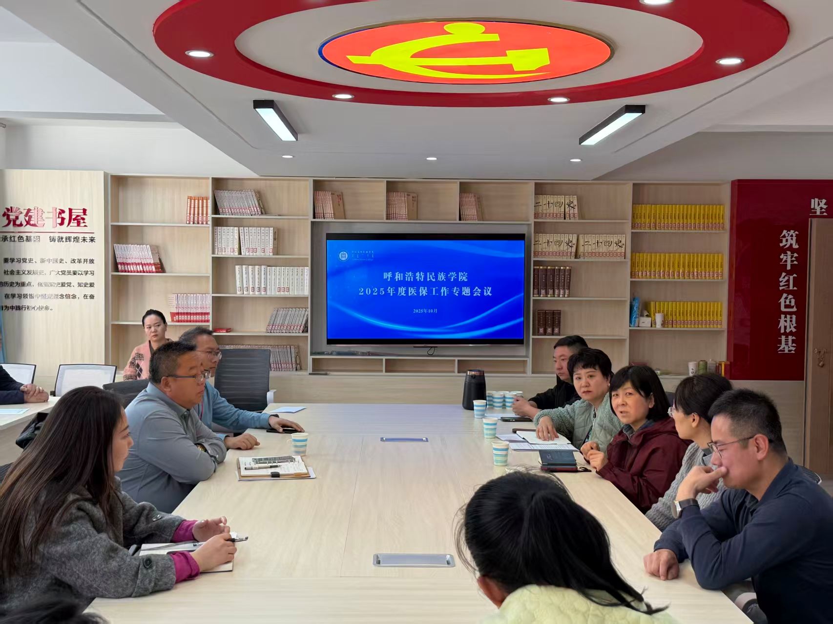 为切实做好2025年度学生医保参保工作,进一步提升工作效能,保障广大学生切身利益,10月21日下午,学校在三号公寓党团活动室召开2025年度学生医保工作专项会议。呼和浩特市医保服务中心、新城区医疗保障局、海拉尔街道办事处相关人员应邀参加,学生工作部部长常喜主持会议,各学院学生医保工作具体负责人参加会议。