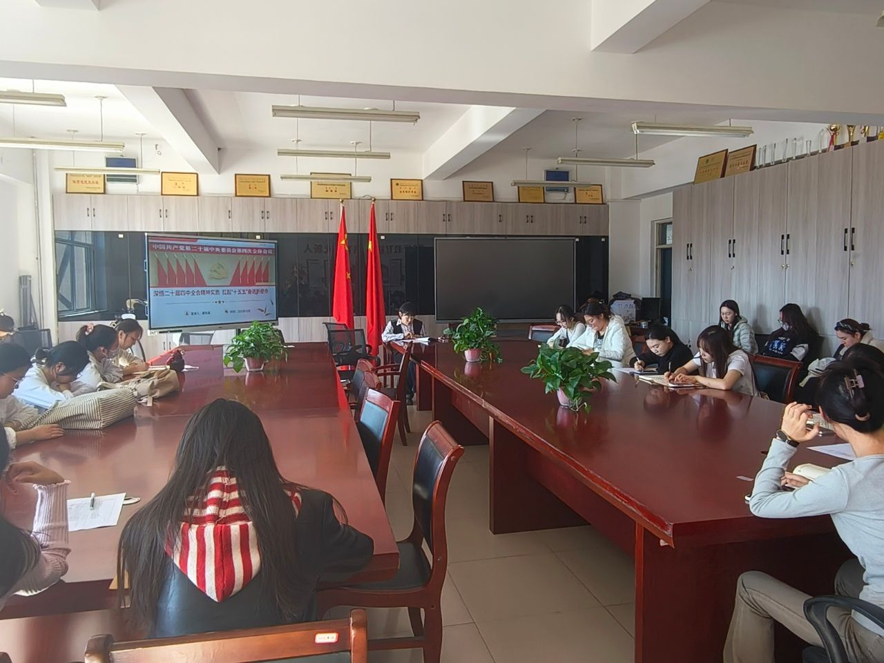 10月31日,教育学院石榴籽党支部和向日葵党支部联合召开党的二十届四中全会精神专题学习会,全体党员参加,会议由石榴籽党支部宣传委员高牧涵领学。