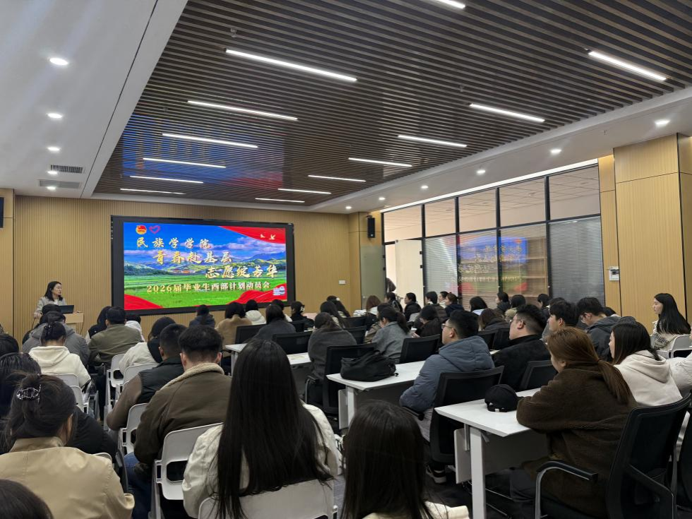 会上,主要围绕西部计划政策要点进行系统解读,重点介绍招募对象、报名流程、服务岗位类别、政策保障措施以及升学就业相关优惠政策。结合民族学专业特点,引导同学们将专业所学与基层治理、乡村振兴、民族地区发展需求紧密结合,鼓励大家在服务基层的实践中锤炼本领、实现价值。