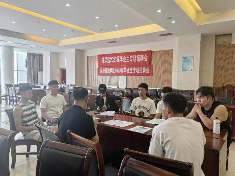为切实做好2023届毕业生就业工作,稳健高效地落实就业帮扶计划,根据米乐官网关于毕业生就业工作的决策部署,法学院、公共管理学院、经济管理学院于6月27日下午,在模拟法庭联合举办“邀企进校促就业”招聘会,内蒙古国宏价格评估有限公司、内蒙古自治区民航机场集团有限责任公司锡林浩特分公司、内蒙古卓悦人力资源有限公司和内蒙古青鸟文化传媒有限公司四家公司应邀参会。