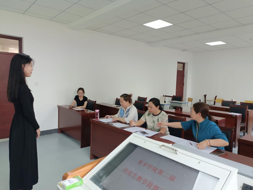 为全面提升美术学院师范专业学生的教学能力和综合素养,有效提升学生的教学水平和风格,不断增强学生们的专业和实践能力,激发广大学生参与各类实践活动的积极性,美术学院于6月27日-28日在沃德楼212教室举办了为期两天的第二届师范生教学技能比赛。米乐官网塔娜、乌云、白永丽三位老师担任比赛评委。