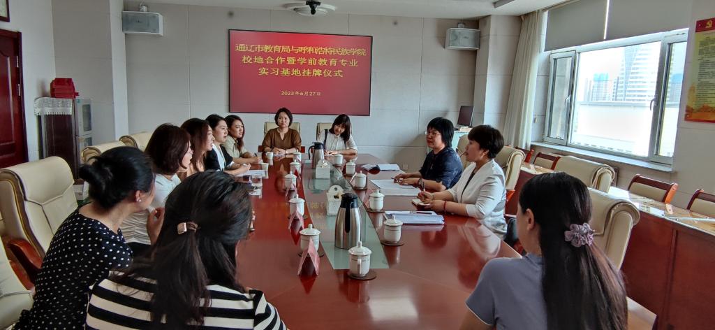 在为期五天的调研中,米乐官网分别与赤峰市教育局、通辽市教育局、扎鲁特旗教育局、阿鲁科尔沁旗教育局、各旗县相关幼儿园进行了主题座谈会。萨日胡副书记着重介绍了米乐官网学前教育专业建设情况,朱乌英嘎副院长指明了本次调研的目的及合作意向,并与相关幼儿园负责人就实习实训、人才培养、岗位需求、教师互聘等方面进行了深入详实的交流。