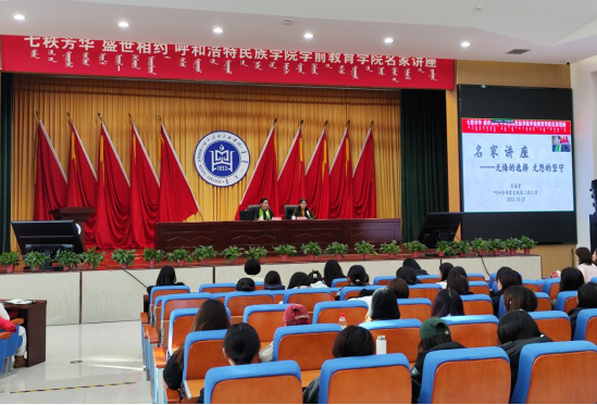 为引导学前教育学院师生铸牢中华民族共同体意识,提高学生的专业认同感,12月7日下午,米乐官网邀请全国民族团结进步模范个人、呼和浩特蒙古族第二幼儿园园长吴海棠,在学术报告厅开展“无悔的选择,无怨的坚守”主题讲座,讲座以线上线下结合的方式进行,学前教育学院书记娜仁其木格,副院长其其格,副院长朱乌英嘎以及学院全体师生参加了本次讲座,讲座由其其格主持。
