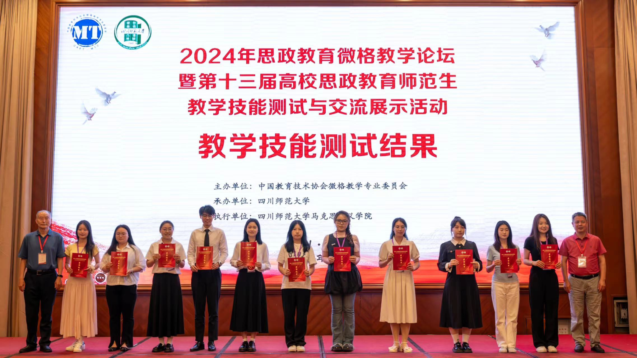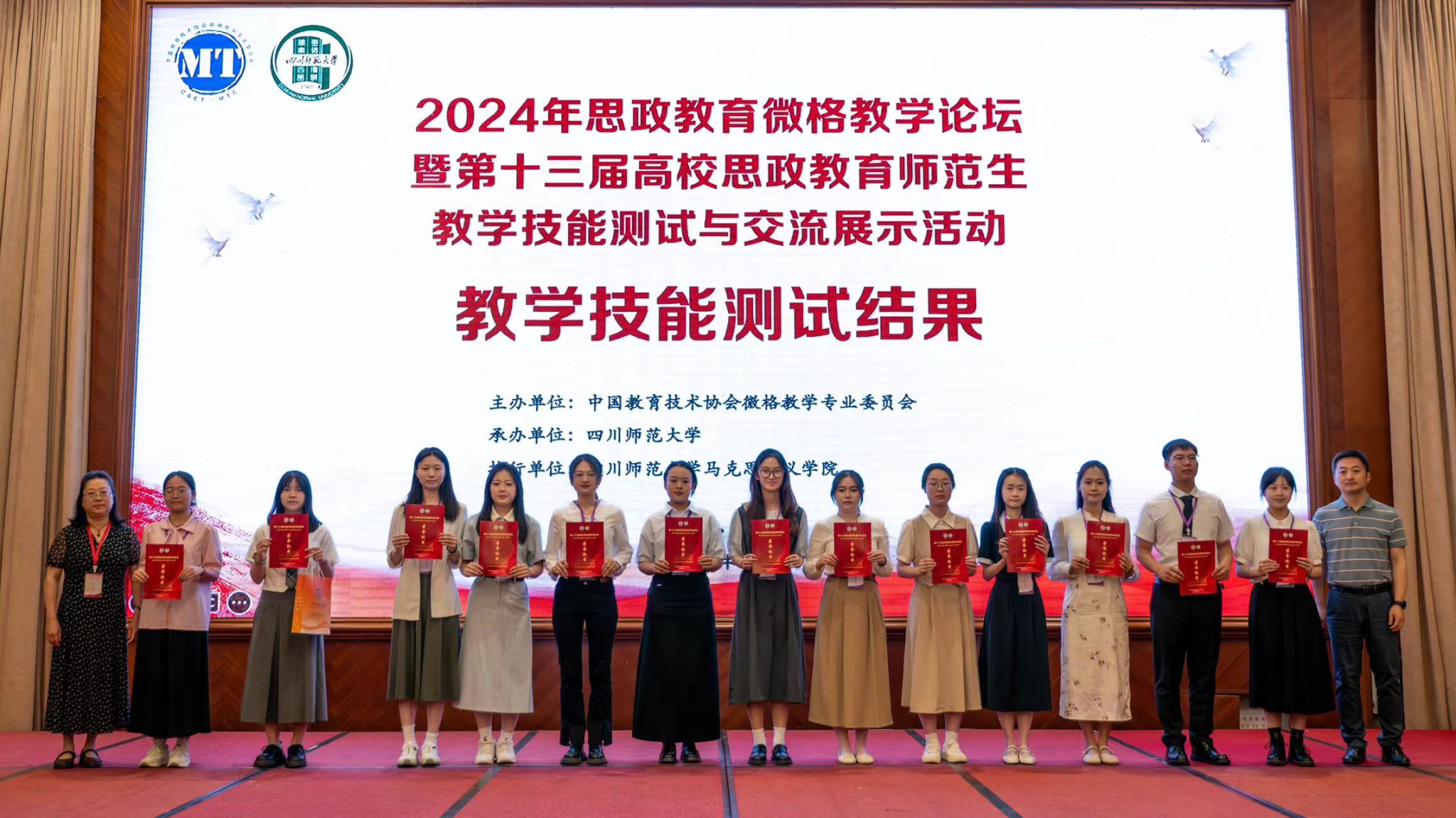 5月24日至27日,由中国教育技术协会微格教学专业委员会主办、四川师范大学承办的2024年思政教育微格教学论坛暨第十三届高校思政教育师范生教学技能测试与交流展示活动落下帷幕。学校六名参赛选手凭借扎实的专业功底、良好的教育教学素养和积极向上的精神风貌,取得了马克思主义学院在此项赛事上的良好战绩。