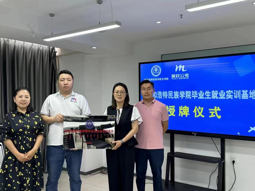 走访期间,学院向企业介绍了有关专业设置、人才培养以及毕业生实习实践、就业需求等情况。认真听取了各企业概况、企业价值观,了解了企业文化及用人需求。就文学院相关专业学生就业前景、就业现状及存在的问题进行了深入的交流探讨。双方围绕学生实习实践、就业指导培训、院企合作等方面达成共识,与蒙政公考签订毕业生就业实训协议并授牌。