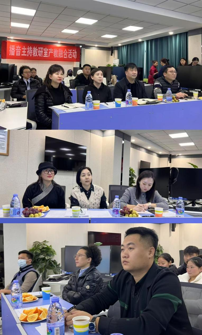 为深化校企合作、推进产教融合,提升教育质量与人才培养水平,11月29日,新闻传媒学院2022级播音与主持艺术班《新媒体短视频制作》产教融合期末考试在都林楼501教室举行,学校党委委员、组织部部长吴阿古拉,教务处处长肖查娜,新闻传媒学院党总支书记苏伦高娃,院长额尔敦毕力格,党总支副书记王丽,副院长安迎春现场观看。播音与主持艺术教研室主任乌日更照来与相关企业代表担任评委。