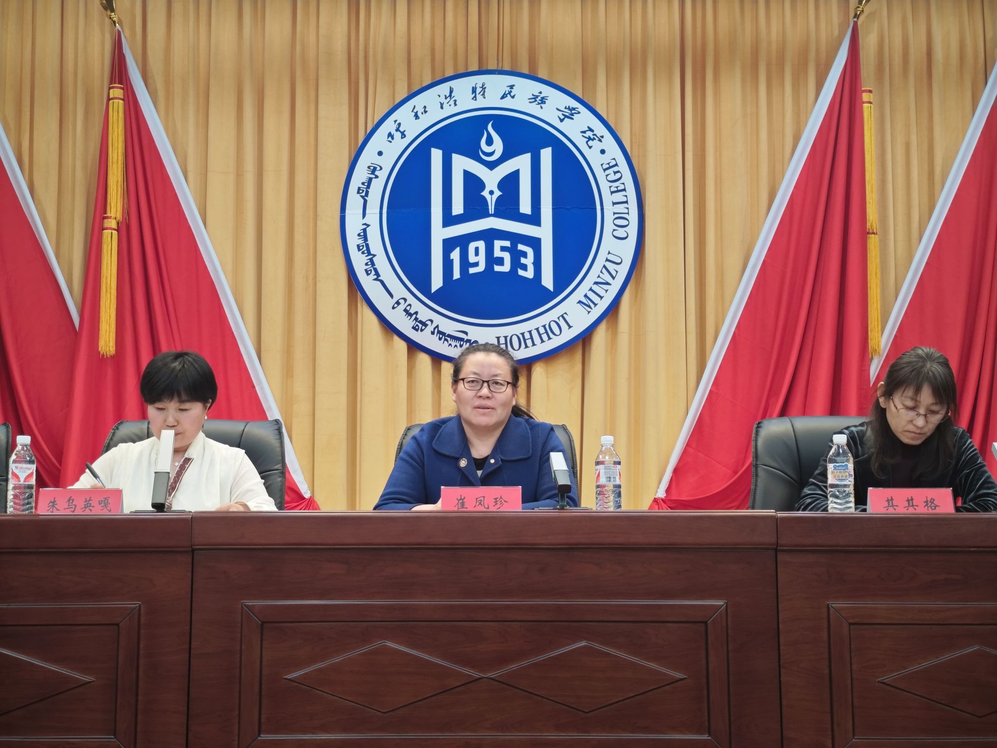 为稳步推进2026届毕业生教育实习工作,12月12日,教育学院在学术报告厅召开2026届毕业生教育实习动员大会。大会邀请教育学院实习基地——呼和浩特市贝尔路小学主校区副校长郭宇馨和呼和浩特市蒙古族幼儿园保教主任满柱尔出席并进行实习指导。教育学院党总支书记崔凤珍、副院长其其格和全体教师、2026届毕业生与会。副院长朱乌英嘎主持。