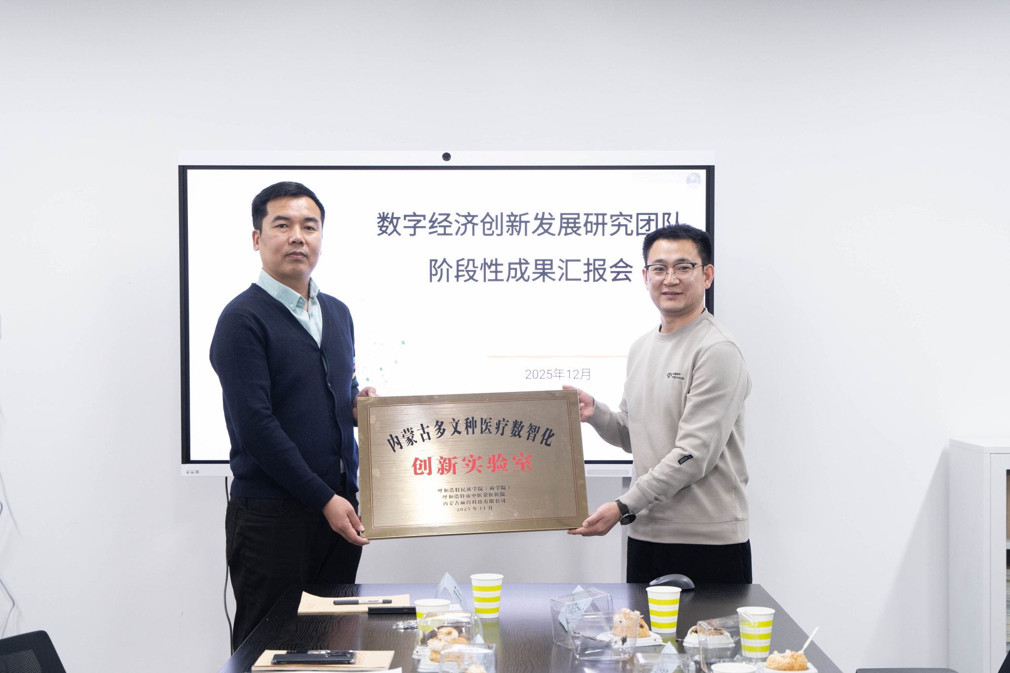 研讨会由团队成员、商学院副院长赛希雅拉图主持。团队负责人、商学院党总支书记周双喜首先全面介绍了团队建设概况及整体研究布局。据介绍,该团队确立三年建设期核心规划,创新构建“校内研究筑基 + 企业开发赋能 + 医院转化落地”三位一体协同共建模式。团队核心成员以商学院数字经济教研室专业教师为主体,同时吸纳呼和浩特市中医蒙医医院、硕得科技公司等单位科研骨干加入,致力于打造一支跨领域、跨学科、跨专业的复合型研究梯队。研讨环节中,团队成员、数字经济教研室主任莲花博士以“多文种医疗数智化转型”为题作主旨报告,深入剖析多文种医疗领域数智化转型的核心要点与发展趋势;团队成员斯钦图力古尔重点汇报了团队首发成果——蒙医医疗数智化转型的历程及当前运行试用情况,引发与会人员广泛关注。