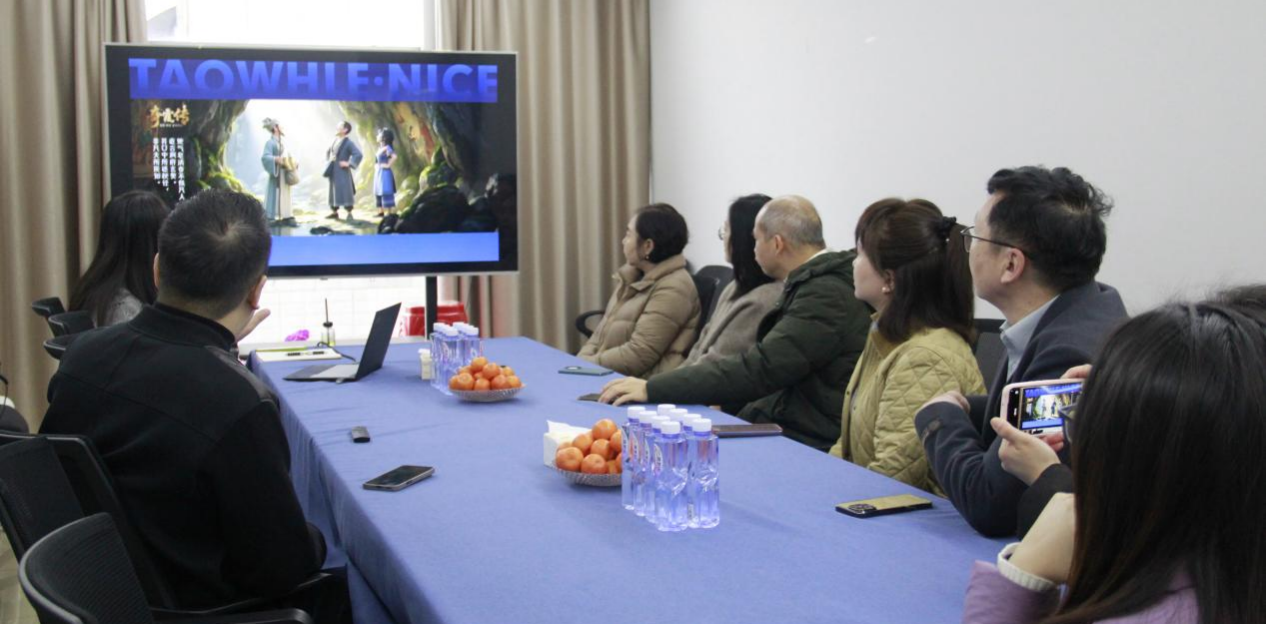 随后到广西新影响禾集文化集团有限公司,实地考察其在实景演出、文创设计、AI技术应用等领域的项目成果。座谈会上,企业执行总裁张飞详细介绍了公司在AI漫剧、虚拟内容制作等方面的实践探索。调研组重点了解了AI技术在短剧、动漫内容生产中的落地模式与人才需求,为后续优化实践教学体系与就业指导方向积累了宝贵经验。